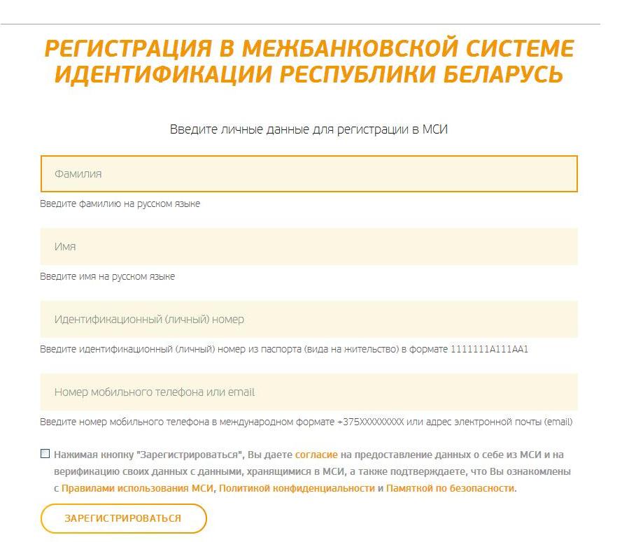 Для регистрации входа в Личный кабинет ЕРИП применяется Межбанковская система идентификации (МСИ). При этом есть два варианта: указать логин и пароль, которые были заданы при регистрации в МСИ, или осуществить вход через МСИ по разовому паролю в виде СМС-кода.м