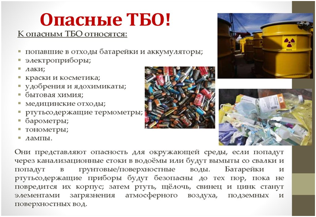 Образование и накопление отходов ведет к нарушению экологического равновесия окружающей среды и представляет реальную угрозу здоровью населения. Чтобы избежать возникновения отходов, их необходимо собирать, перерабатывать, утилизировать.