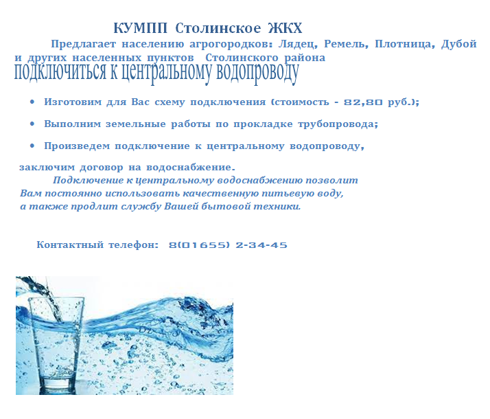 Предлагаем населению Столинского района подключиться к центральному водопроводу