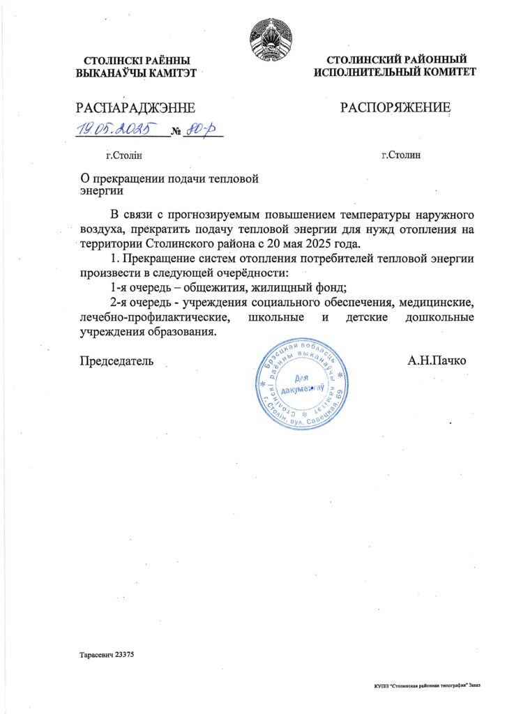 О прекращении подачи тепловой энергии